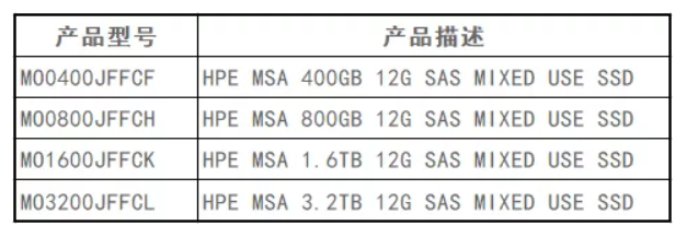 针对如下涉及在MSA存储产品中使用的硬盘型号: