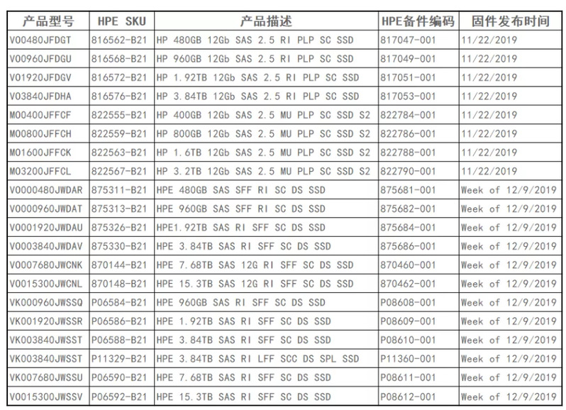 近日HPE收到SSD硬盘供应商提示,由于固件缺陷会导致HPE部分服务器与存储产品中所使用的某些SAS SSD 硬盘产生故障,从而可能导致硬盘工作32768小时(3年270天8小时)时失效,问题发生后该SSD盘和盘上的数据都将无法恢复。对此,HPE强烈推荐客户在做好数据备份后,将HPE相关系列SAS SSD硬盘的关键固件尽快升级到HPD8版本;所涉及服务器与存储产品上使用的SSD硬盘型号以及具体实施方案如下: