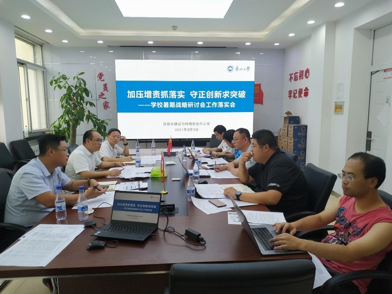 9月3日下午,信网办在计算中心308会议室召开以“加压增责抓落实、守正创新求突破”为主题的传达落实学校暑期战略研讨会工作会议,副校长唐立新以视频连线方式出席会议,信网办副科级以上干部参加了会议。