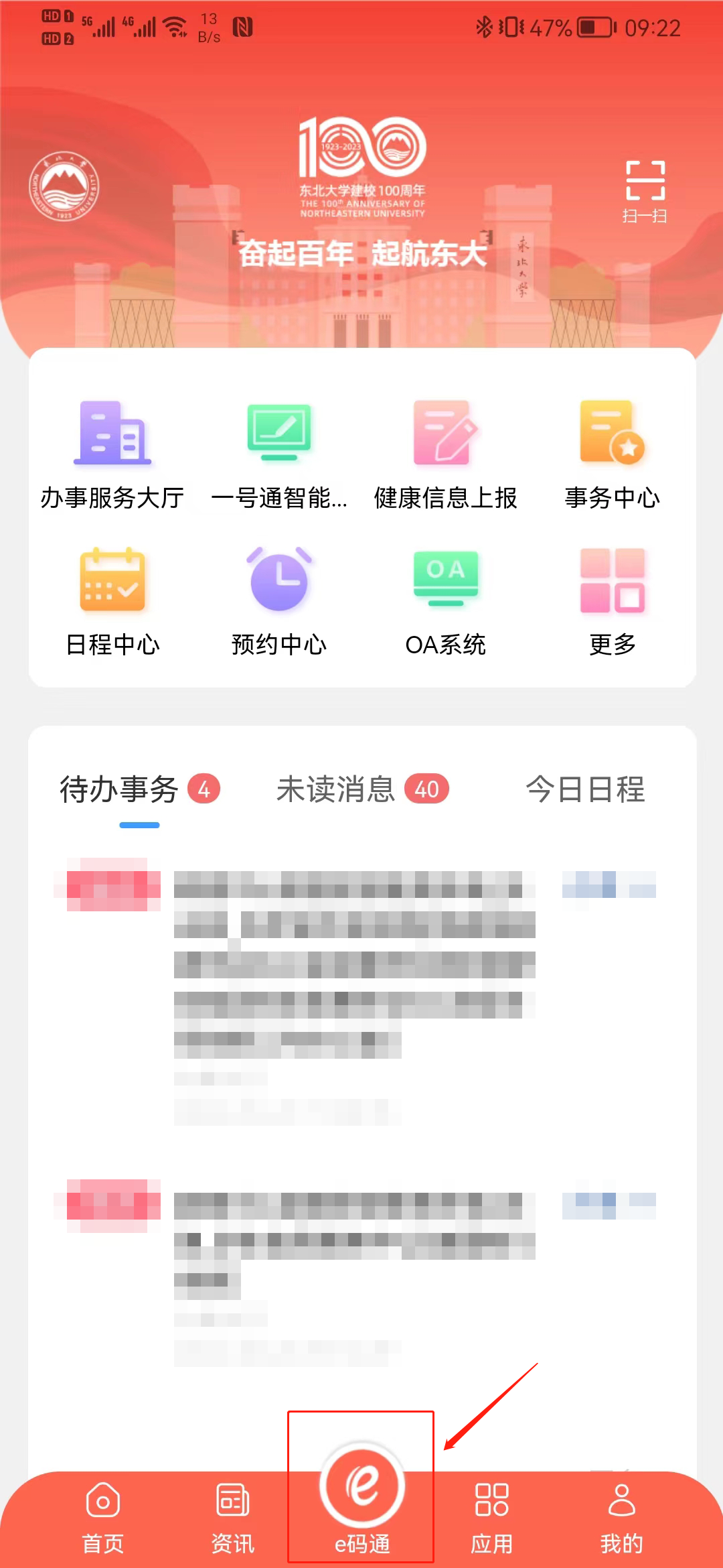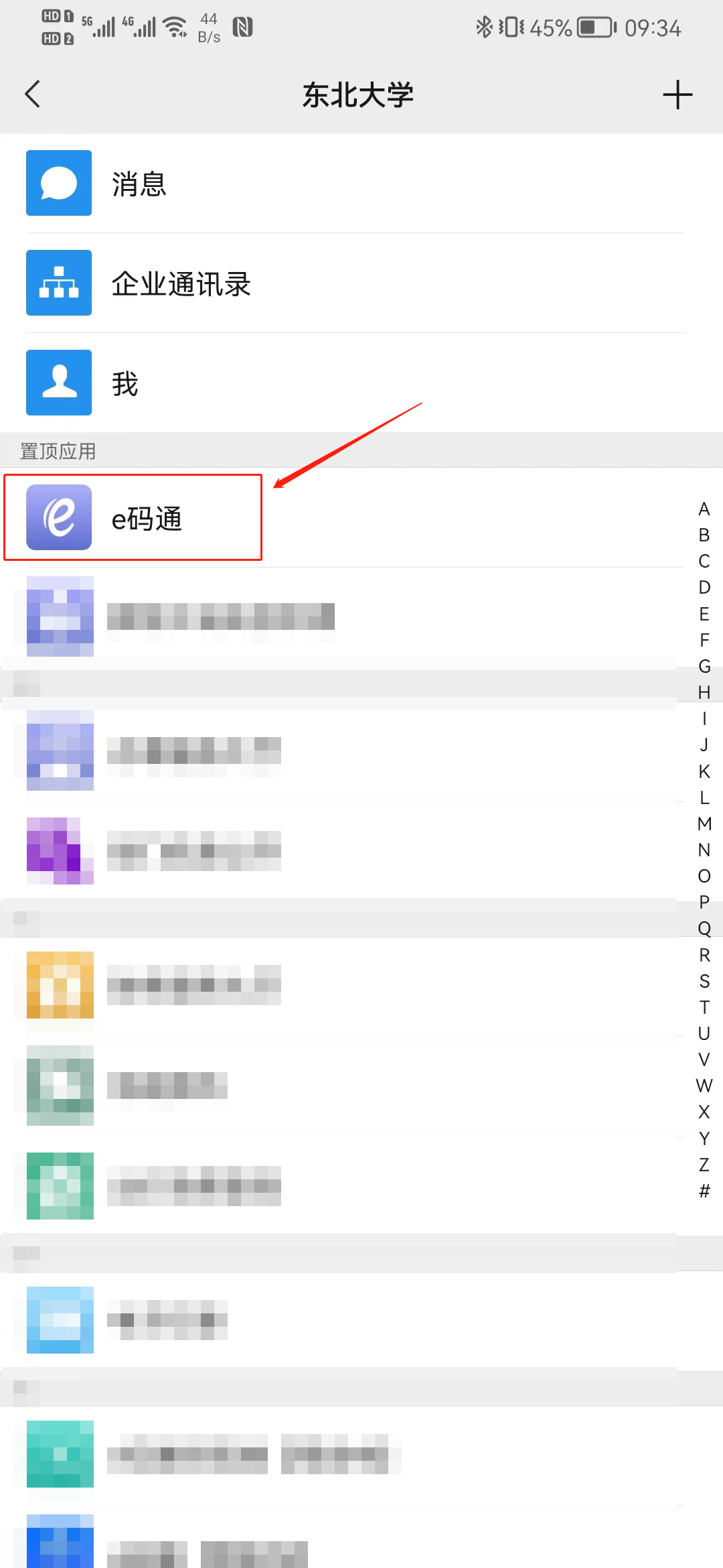 (2)在应用列表中点击“e码通”