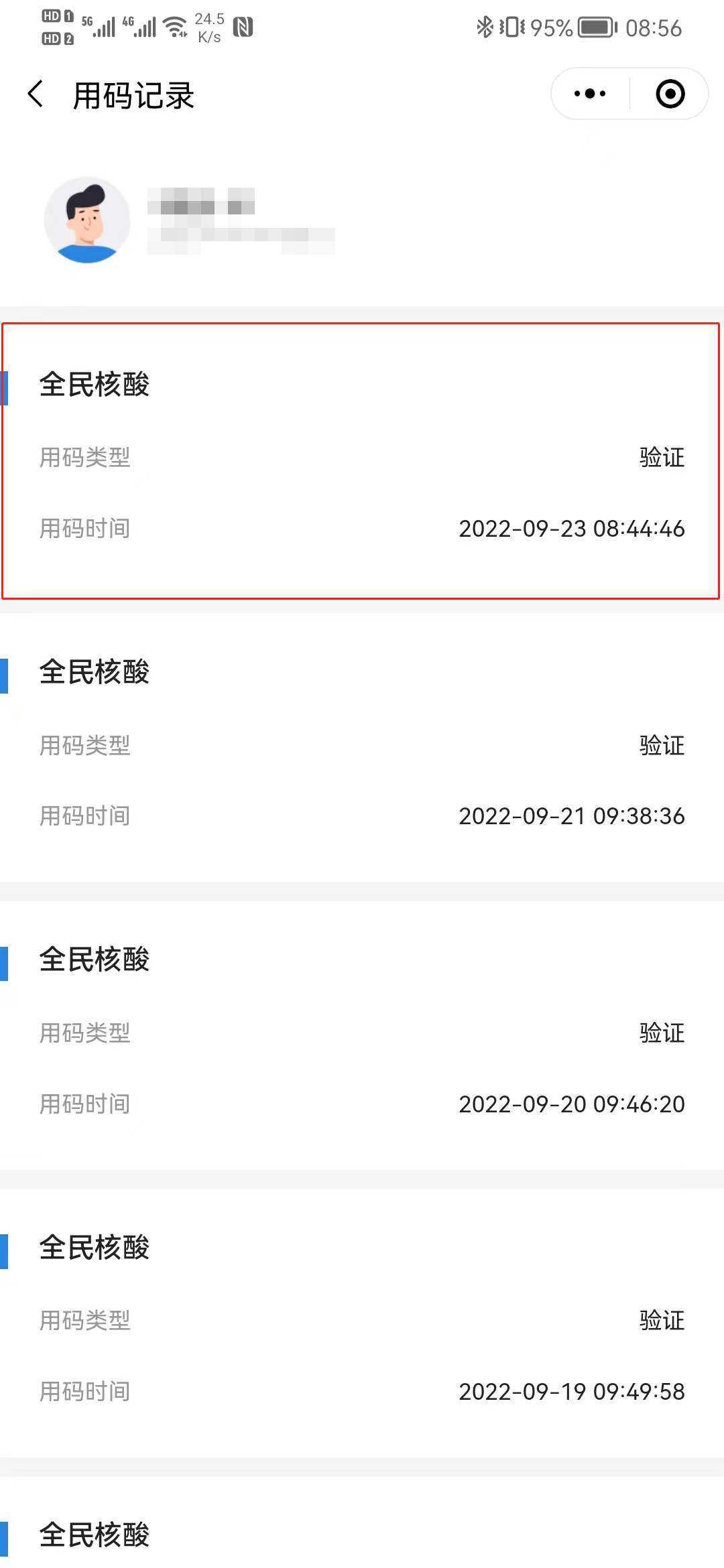 (4)向核验人员出示“用码记录”