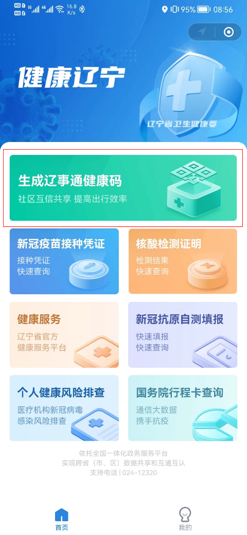 (2)进入小程序,点击“生成辽事通健康码”