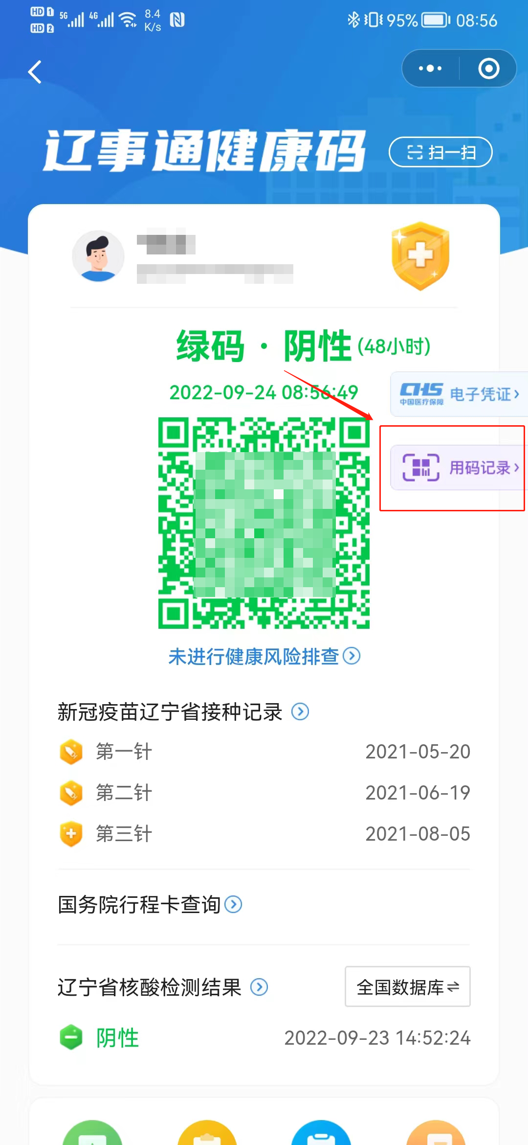 2.出示“辽事通”用码记录
