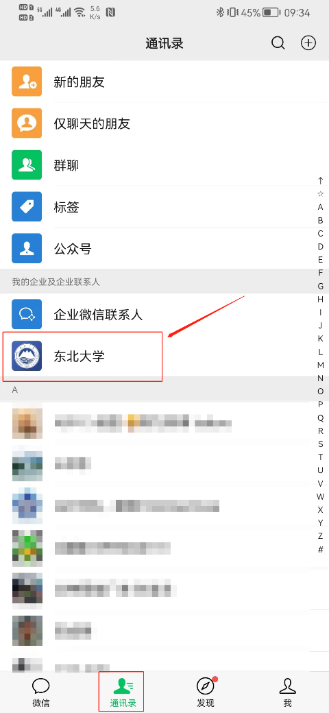 (1)打开“东北大学微信企业号”
