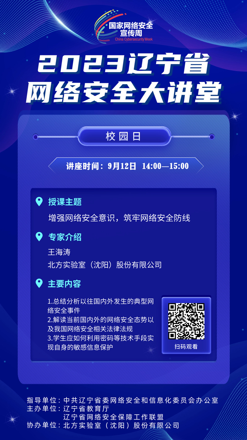 辽宁省:校园日网络安全大讲堂的主题和收看方式