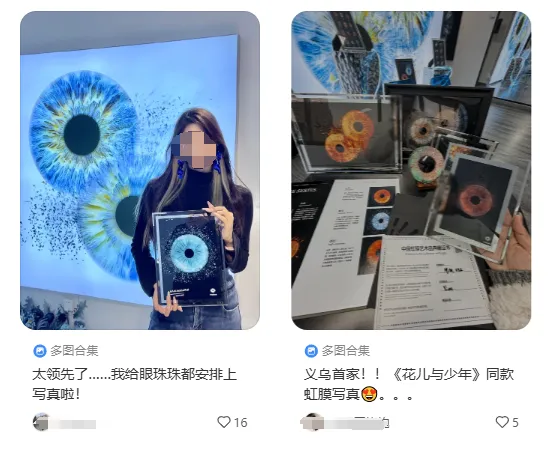 价格上,“虹膜写真”的分为单眼和双眼,价格从几十元到两百多元不等,再往上,甚至还有定价三千多元的“虹膜写真私人藏品”、“典藏级艺术品”......