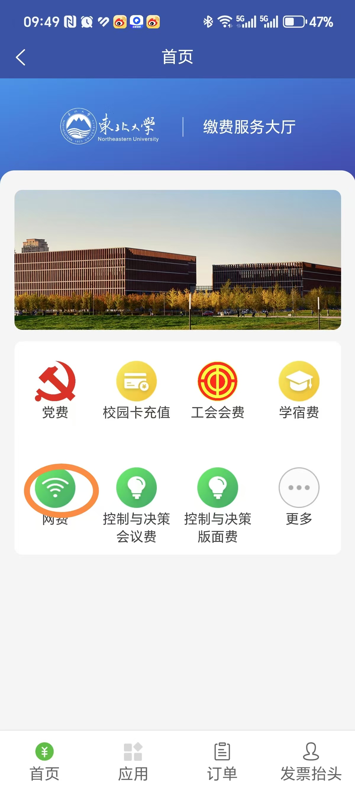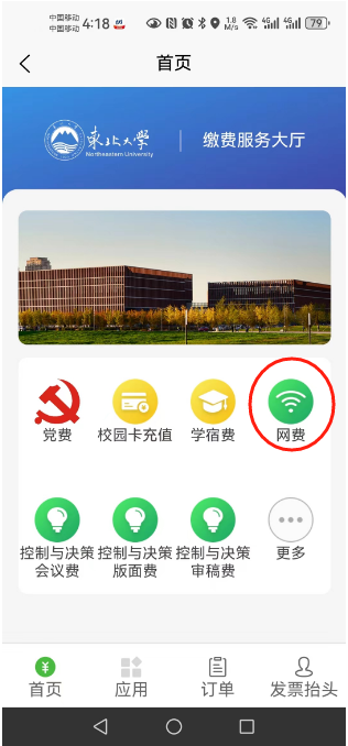 方法一:使用“智慧东大”手机APP充网费