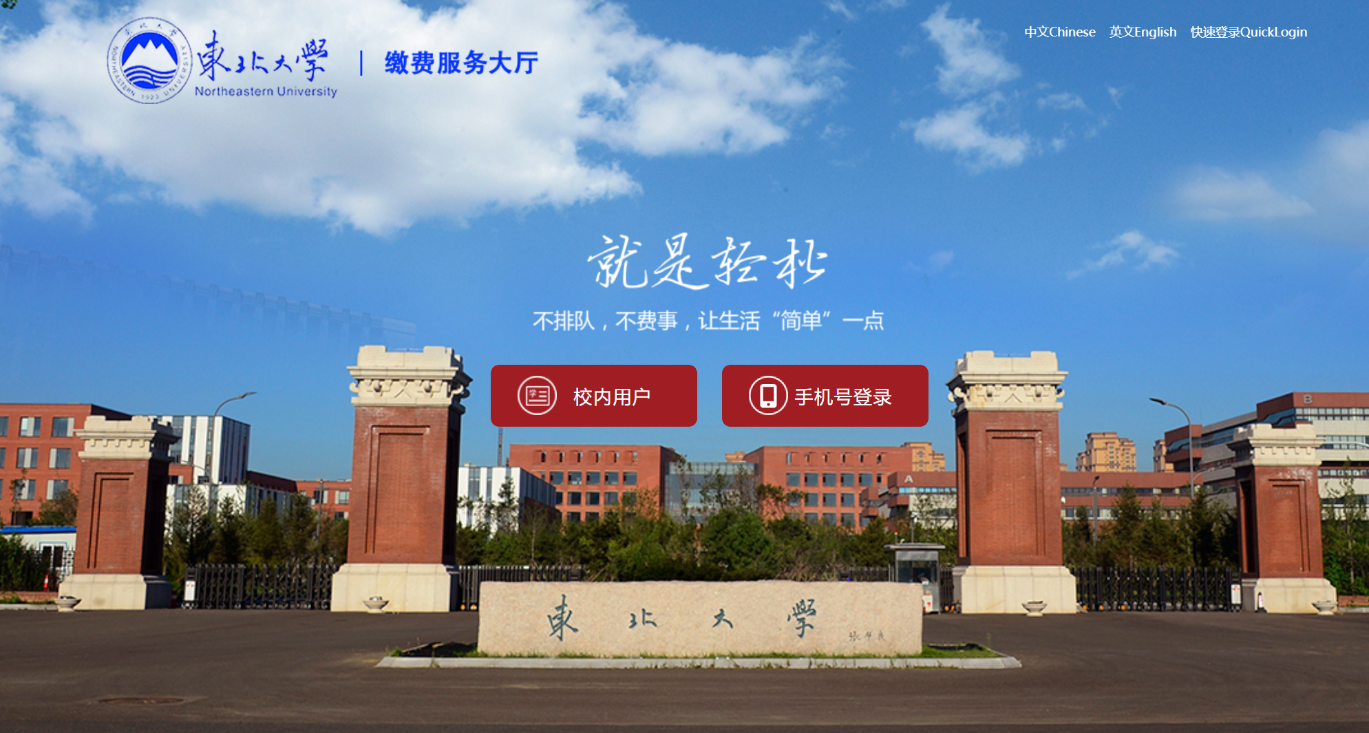 1.通过浏览器访问https://pay.neu.edu.cn,选择“校内用户”。