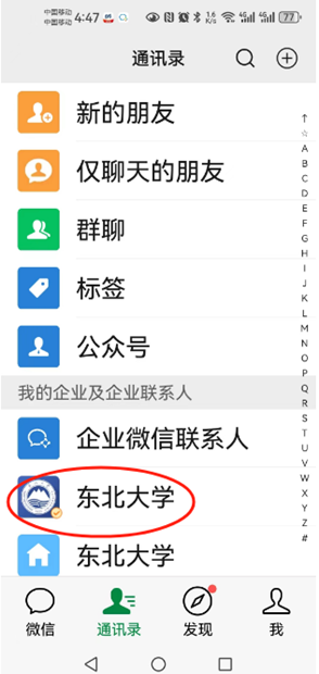 1.进入东北大学微信企业号